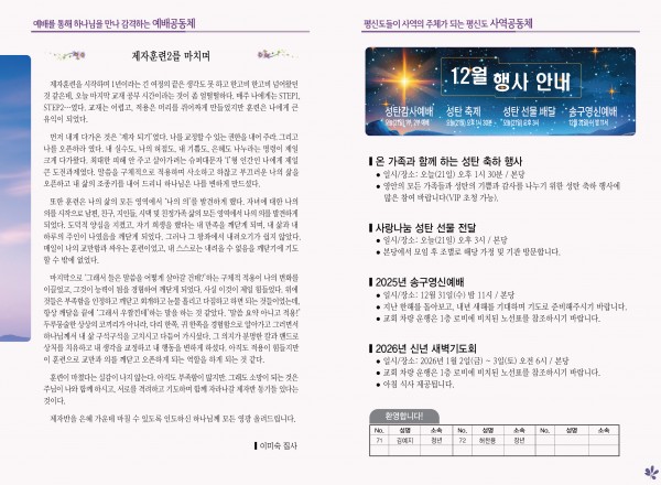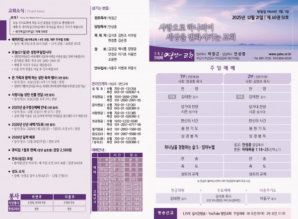 2025년 12월 21일 주보 페이지 정보 작성자 관리지기 작성일25-12-20 10:14 조회863회 댓글0건 관련링크 목록 본문 2025년 12월 21일 주보 댓글목록 등록된 댓글이 없습니다. 목록
