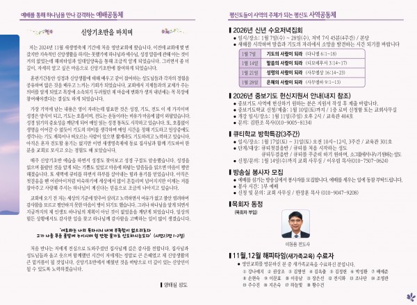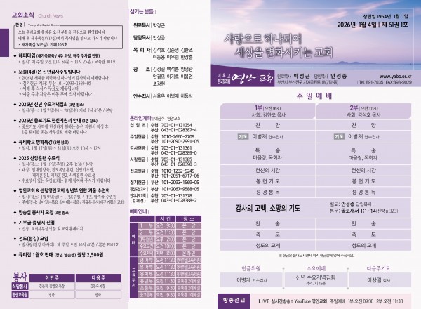 2026년 1월 4일 주보 페이지 정보 작성자 관리지기 작성일26-01-03 10:18 조회899회 댓글0건 관련링크 목록 본문 2026년 1월 4일 주보 댓글목록 등록된 댓글이 없습니다. 목록