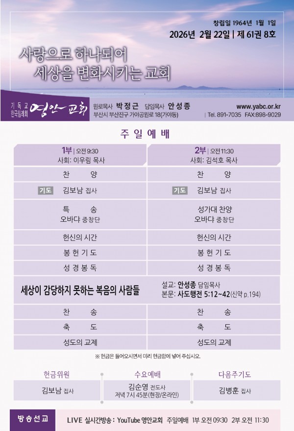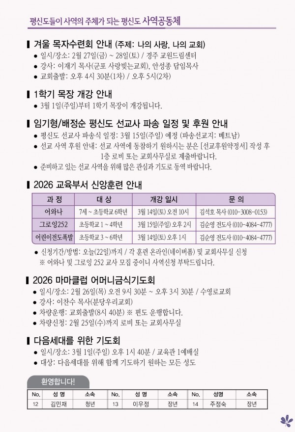 2026년 2월 22일 주보 페이지 정보 작성자 관리지기 작성일26-02-21 11:19 조회575회 댓글0건 관련링크 목록 본문 2026년 2월 22일 주보 댓글목록 등록된 댓글이 없습니다. 목록